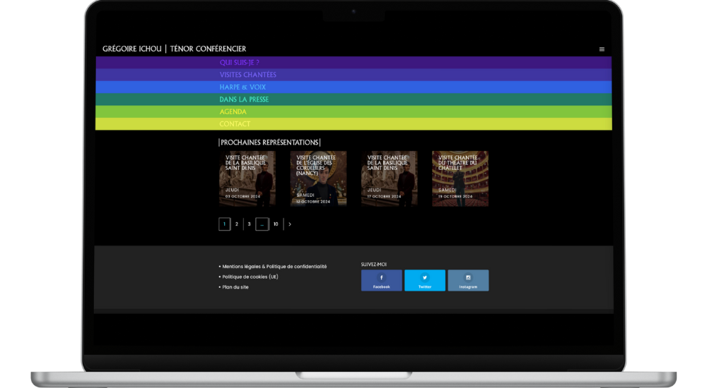 Sans oublier l’objectif principal : donner accès rapidement à l’information essentiel du site c’est-à-dire les prochaines dates de Grégoire. Pour cela nous avons simplifié le site existant pour se concentrer sur l’essentiel.