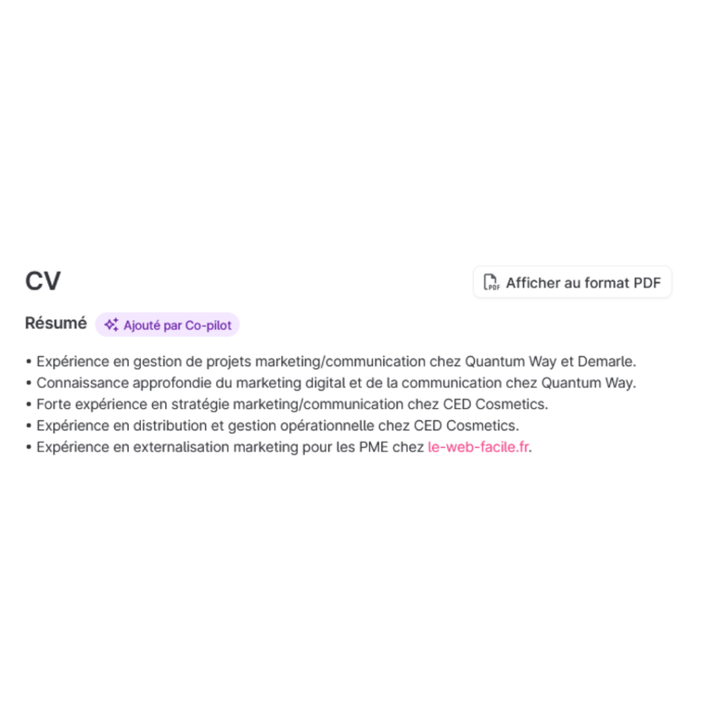 Je n’ai pu tester mon CV que sur Teamtailor, si un recruteur accepte de tester mon CV avec son ATS, je suis partante contactez-moi.
